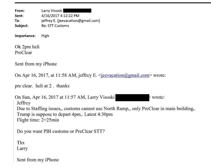 It’s unclear as to why Visoski would coordinate Epstein’s flights with Trump’s