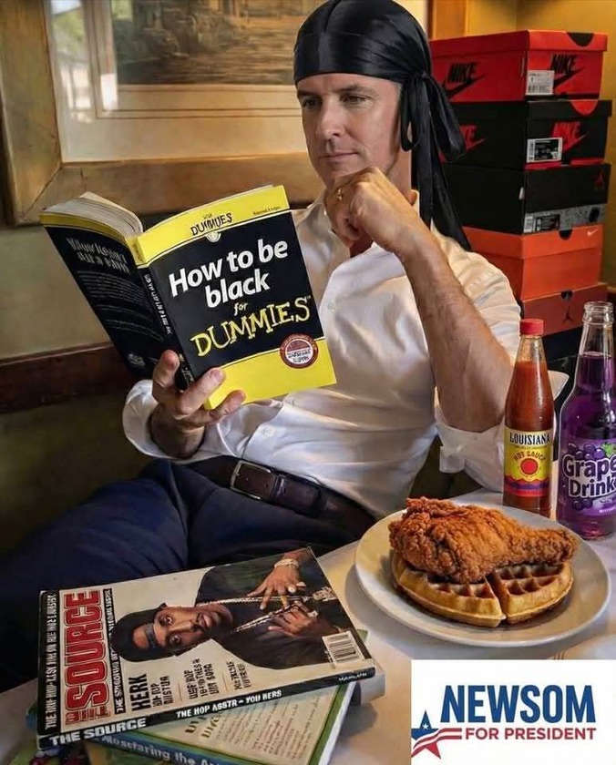 All right, take race out of it, just for the sake of argument, because Newsom is absolutely a condescending prick. Now there is NO WAY to escape what he said: "You guys are stupid, or at least I think so. And look, I'm better than you, because I'm governor of a whole-assed state. But when you get right down to it, I'm like you: I'm an idiot. Don't you like me better now?"