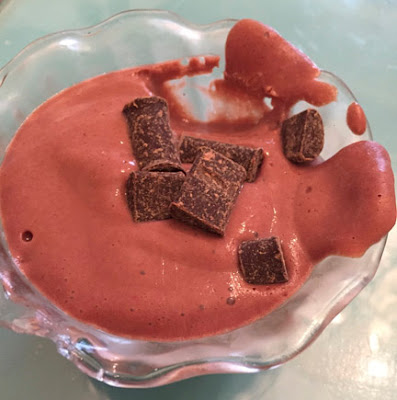 This is a raspberry mousse, that looks like Judy Grasswipe prepared it, slopping it all over the place: