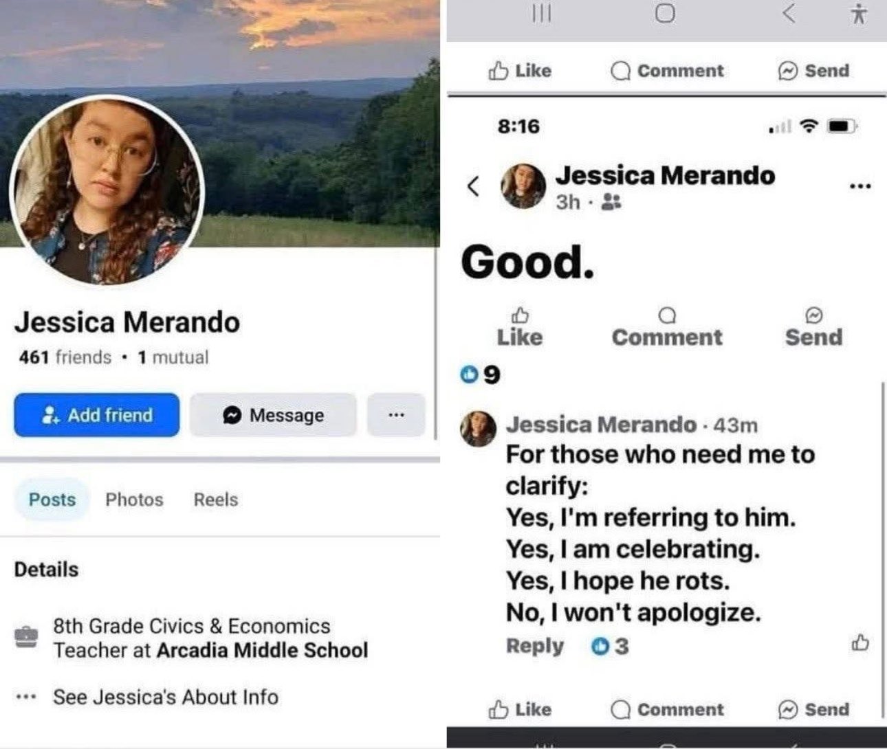 Gleeful school teachers celebrate Charlie Kirk assassination in horrific, ghoulish posts: ‘This person teaches your children’