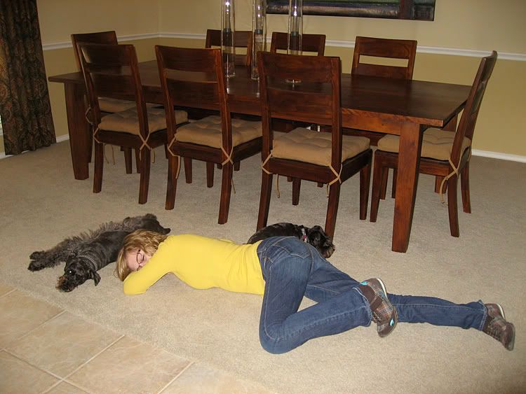 Here is my "baby" taken a few minutes ago (my middle child).  I felt bad for not having a baby picture of her in my photobucket.  She got off early today (at noon).   I went and picked her up and took her to lunch.  She came home, laid down on the floor and played with the dogs then fell asleep.  Awwww isn't she cute?!?    :-)