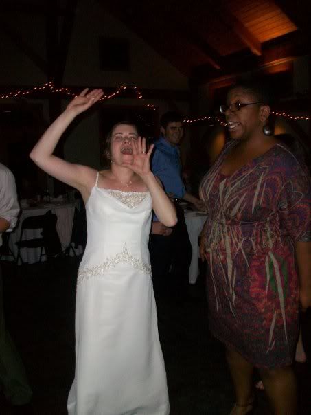 The blushing bride and Michelle Obama led the traditional Hog Calling Contest at the wedding dance.