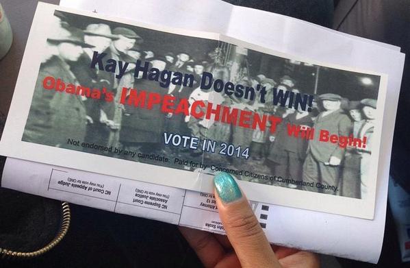 Evidently no one over there can read. It says if Hagan is NOT reelected. In other words, vote for her or risk being lynched.Cindie